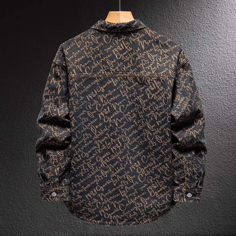 巴黎高端牛仔衬衫男款春秋季复古提花外套翻领宽松休闲夹克