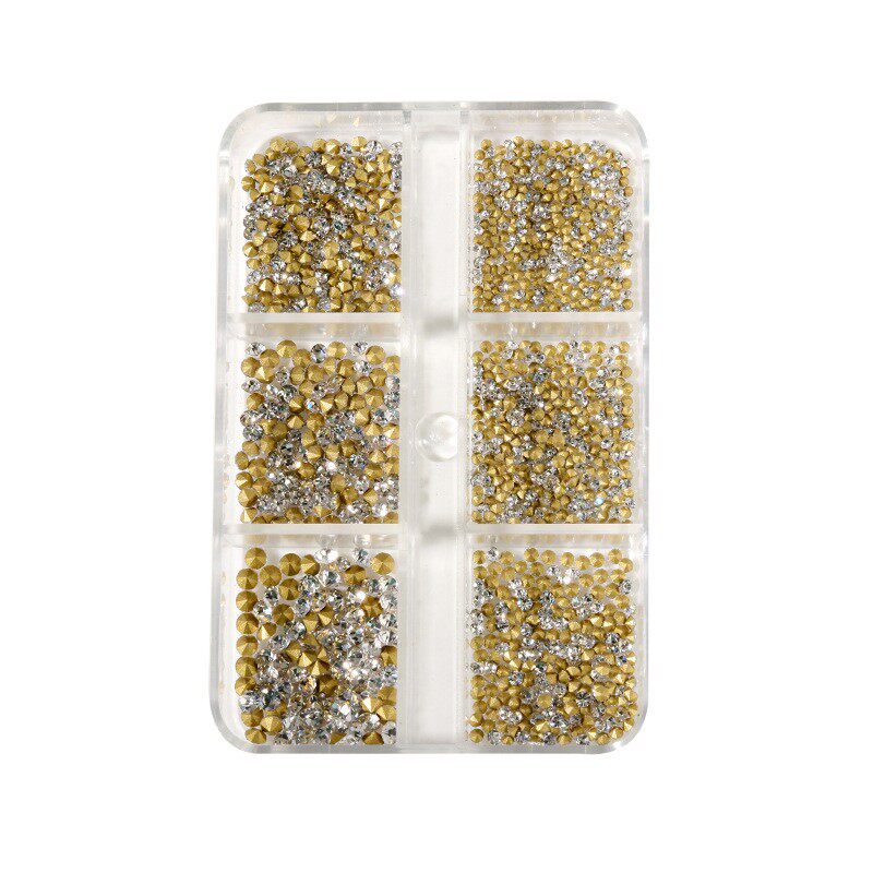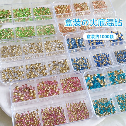 美甲透明水晶尖底钻大小混合堆钻粉色蓝绿超闪玻璃水钻指甲装饰品