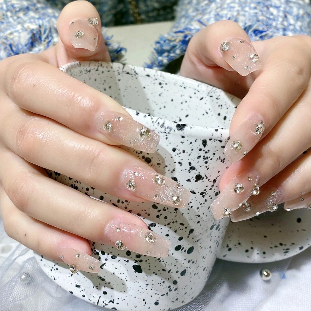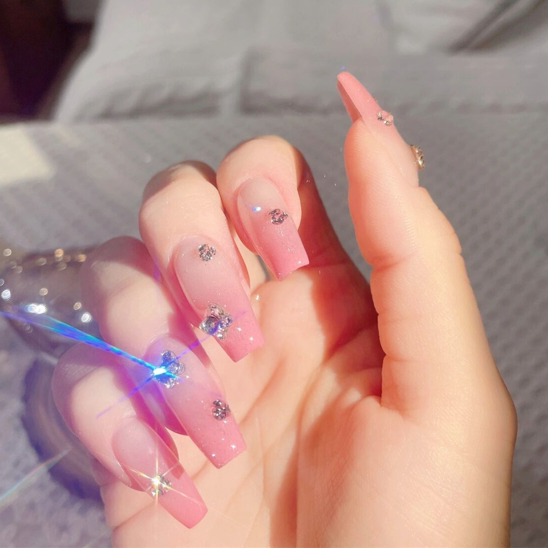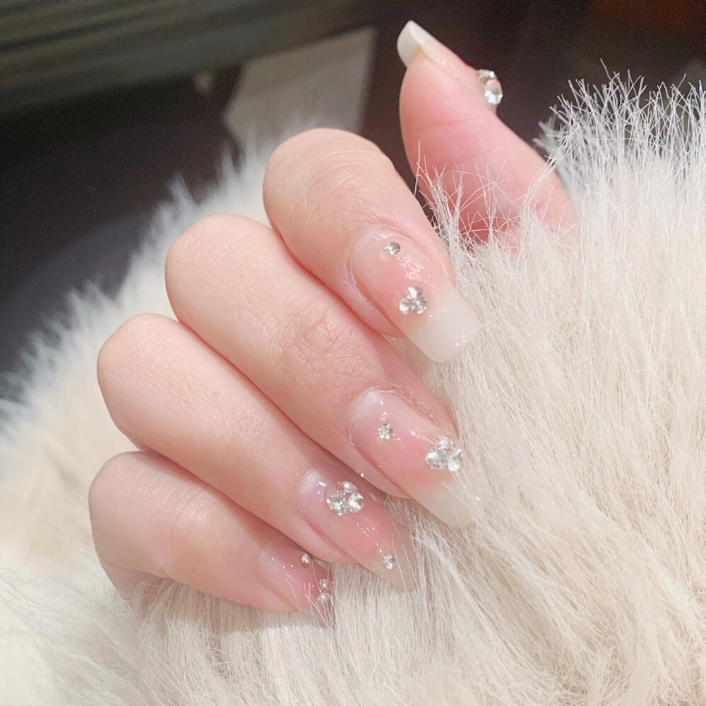 透明粉色美甲尖底堆钻水钻装饰品