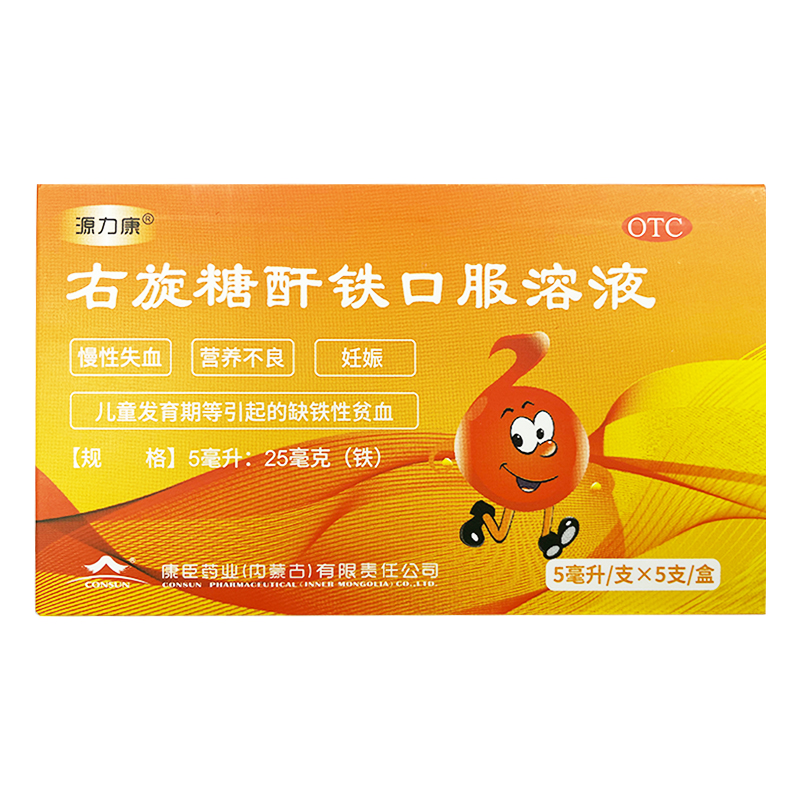 【源力康】右旋糖酐铁口服溶液5ml25mg*5ml*5支/盒