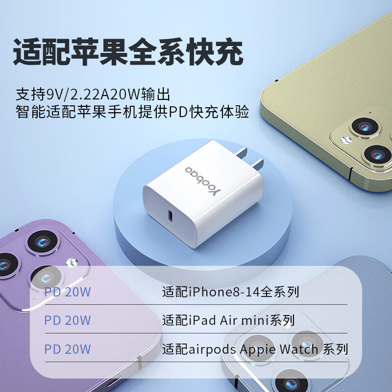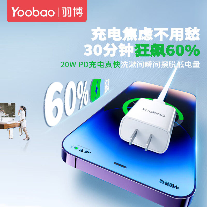 羽博充电头适用华为苹果iphone15充电器头pd20w快充14pro手机冲电ipad平板12xr闪充typec插头13通用C口快充头