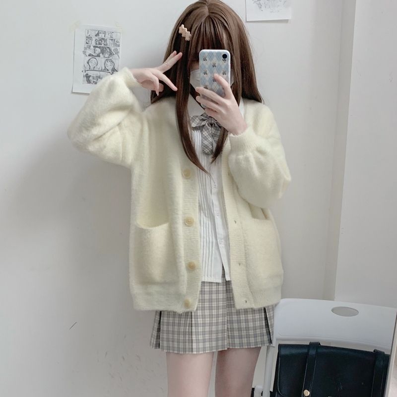 JK制服外穿毛衣外套女ins学院风秋冬加厚宽松百搭针织开衫