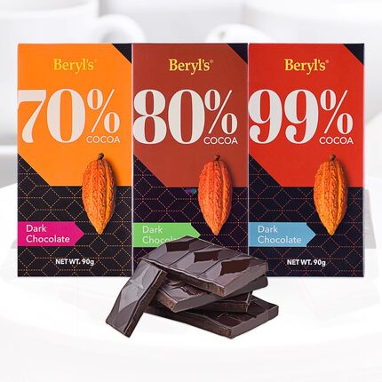 马来西亚原装进口零食可可脂beryls倍乐思99 80 70醇黑巧克力排块
