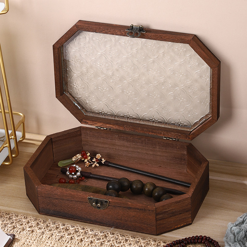 中式古典海棠花玻璃收纳盒木盒高档精致发簪簪子珠宝首饰盒礼盒子