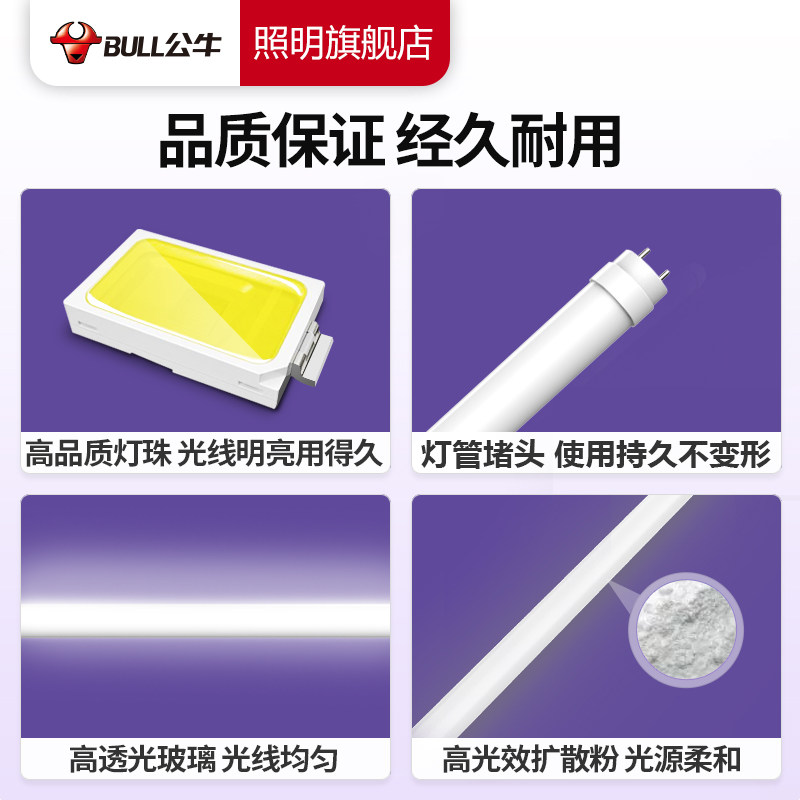 公牛T8led灯管t514w照明灯日光超亮商用家用荧光长条节能双端光管