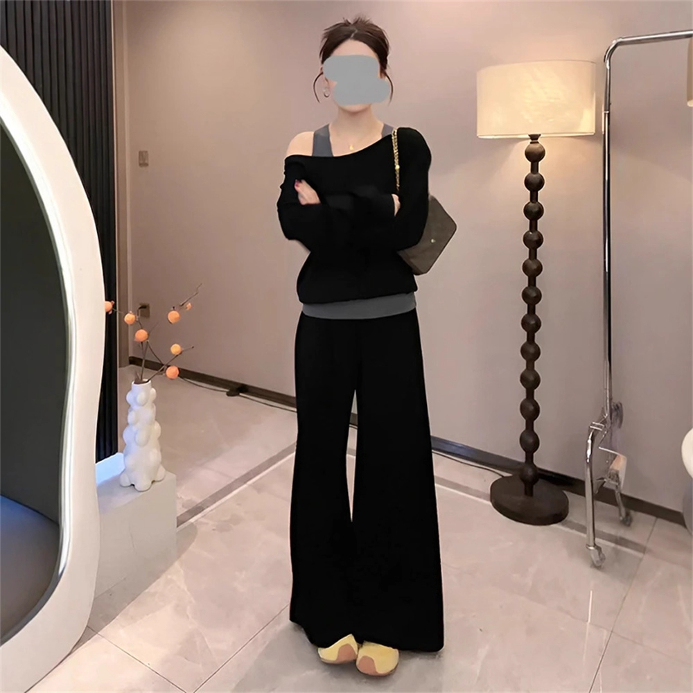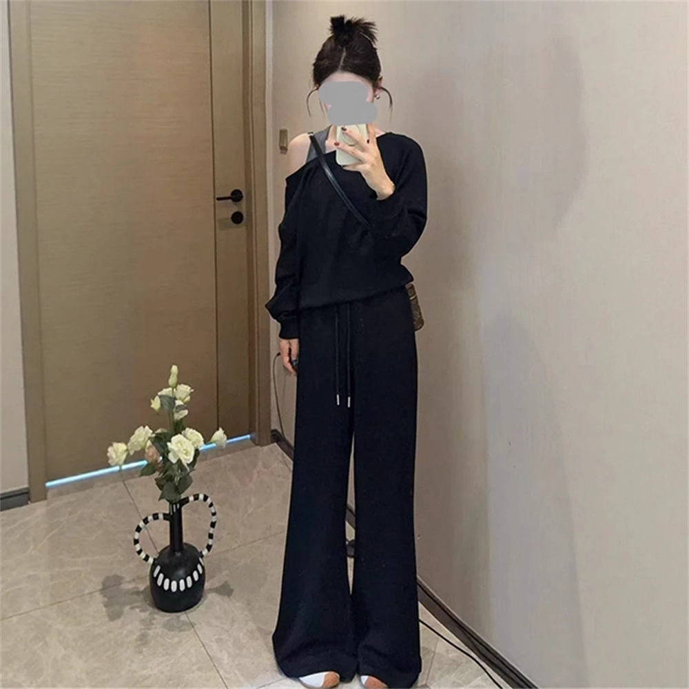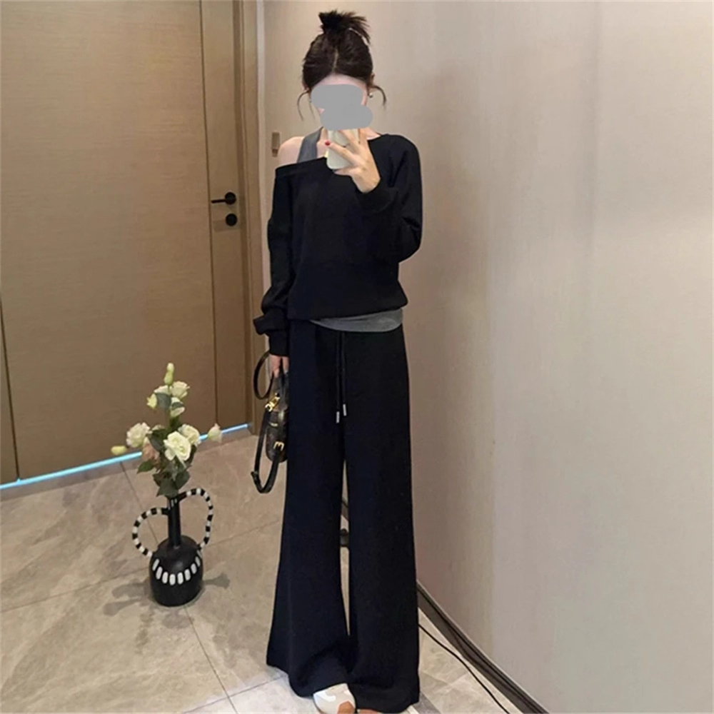 假两件露肩卫衣+休闲裤轻熟风套装时尚洋气减龄显瘦遮肉两件套女
