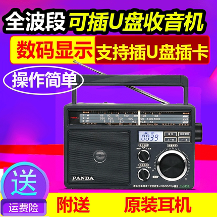 熊猫T09全波段台式老年人收音机T-09插卡U盘老人老年人广播播放器