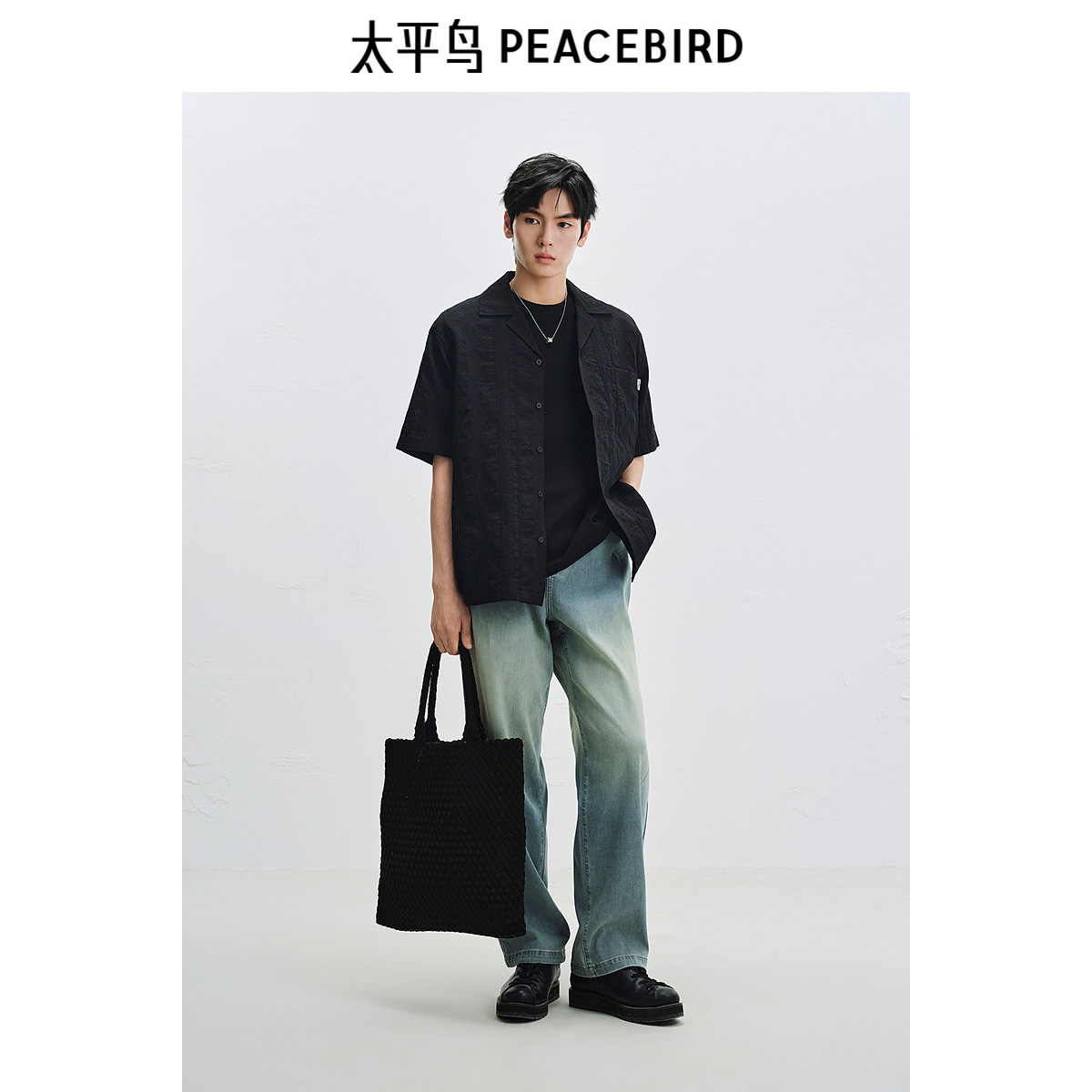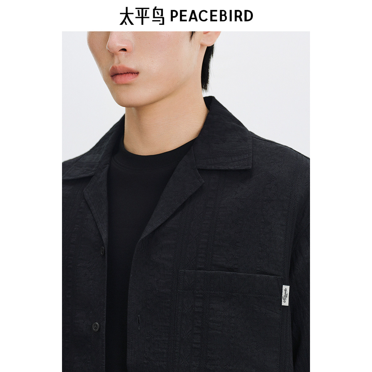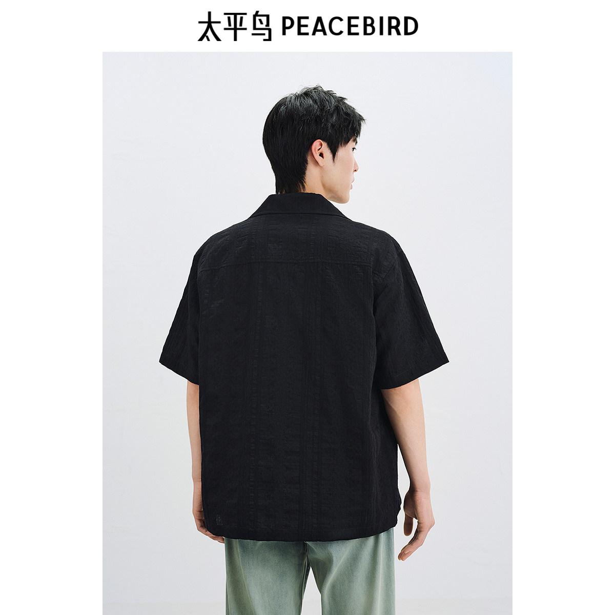 太平鸟男装 休闲衬衫2025夏季新款宽松提花肌理短袖衬衫男士衬衣