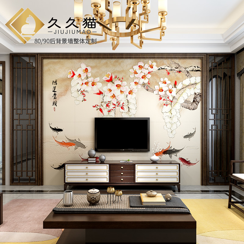 客厅电视墙实木花格红檀木色瓷砖背景墙原木造型大理石护墙板