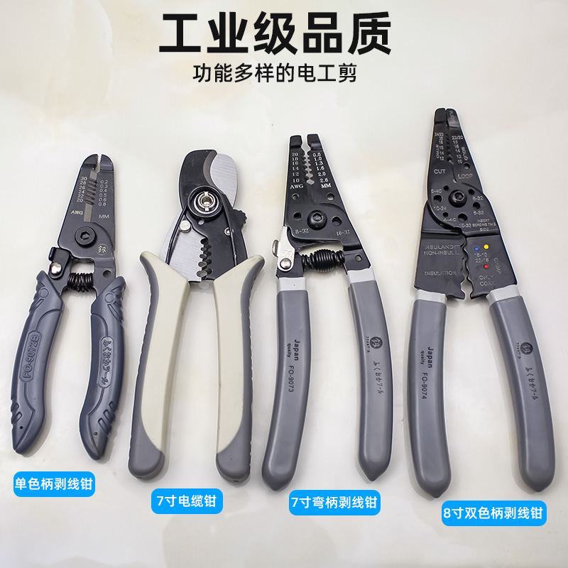 福冈工具6/7.5/8寸多功能剥皮钳电线缆剥线钳压线剪刀扒皮钳拔线