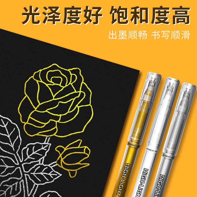 高光笔美术专用白色可叠色马克笔不透色记号笔儿童水彩绘画笔防水速干金色银色勾线笔荧光笔画画手绘素描白笔