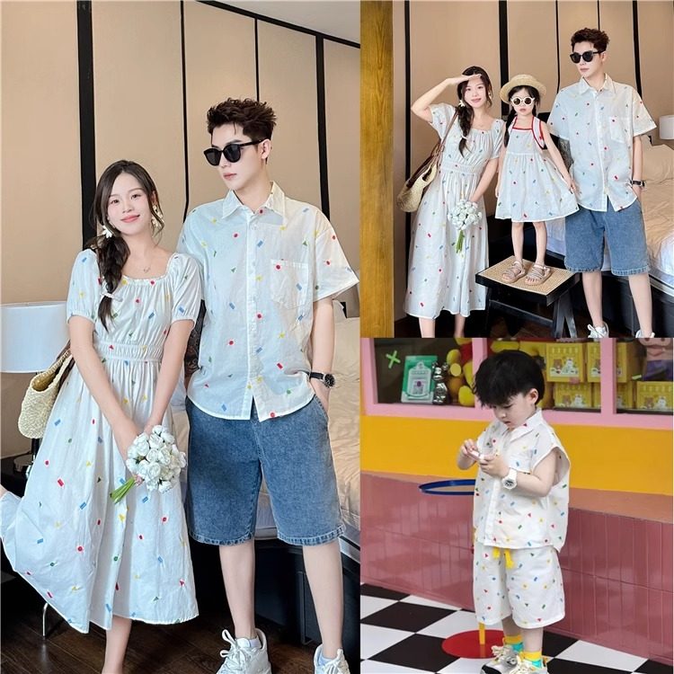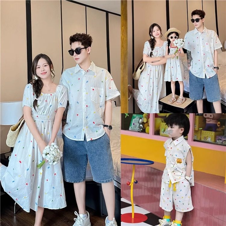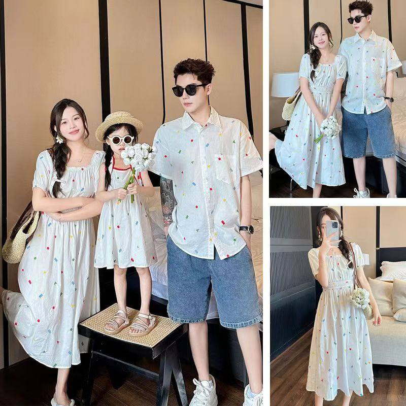 亲子装夏季衬衣短袖2025新款潮一家三口母女装海边度假洋气连衣裙
