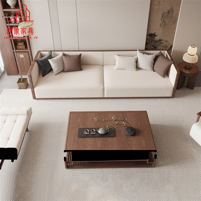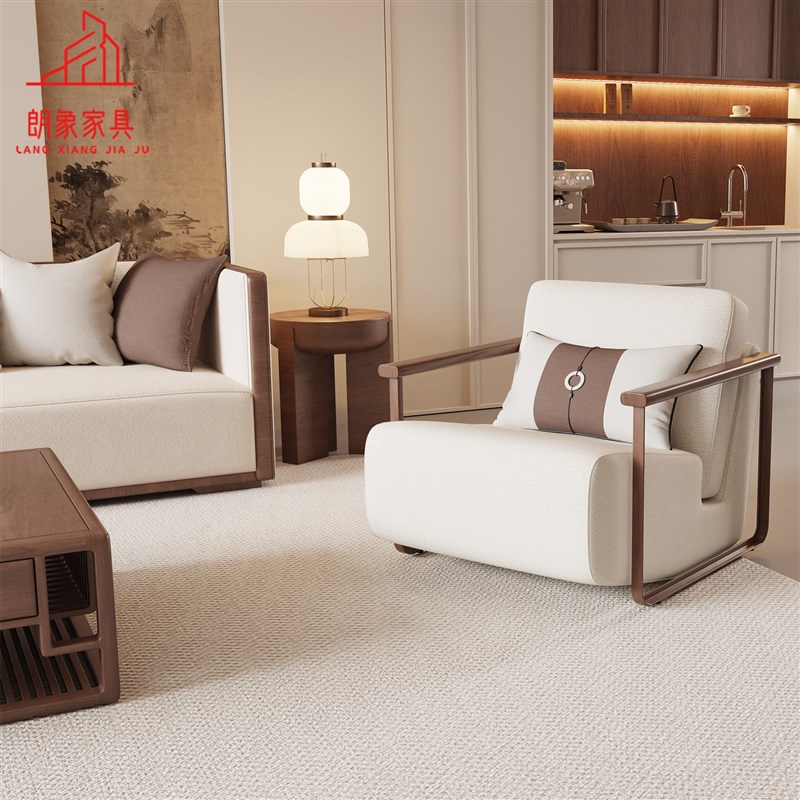 新中式实木沙发现代高级感酒店民宿家具黑胡桃木禅意样板间沙发
