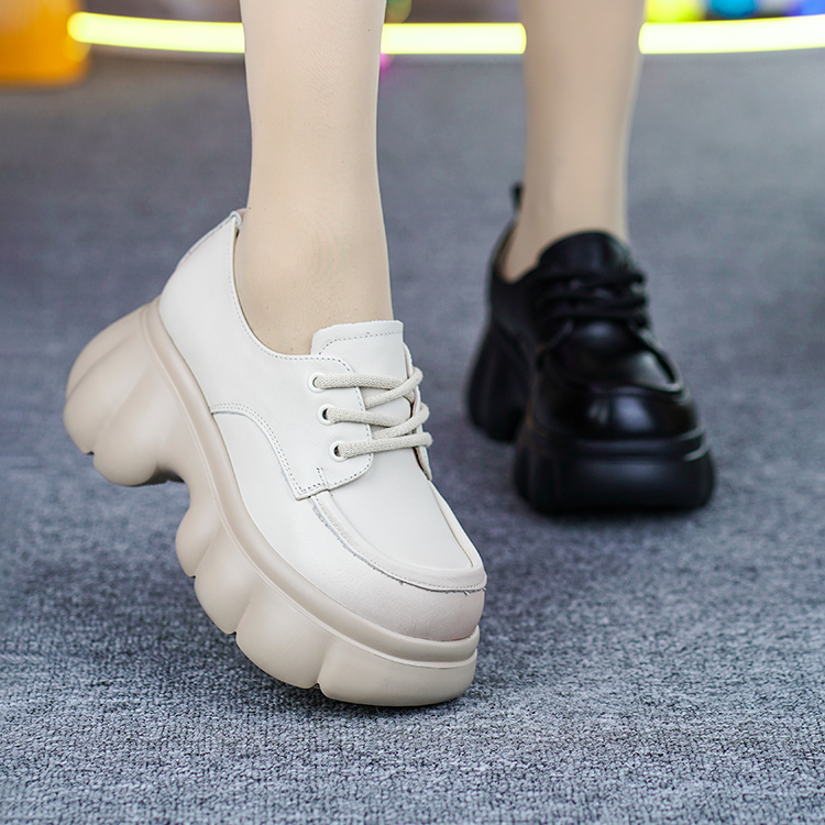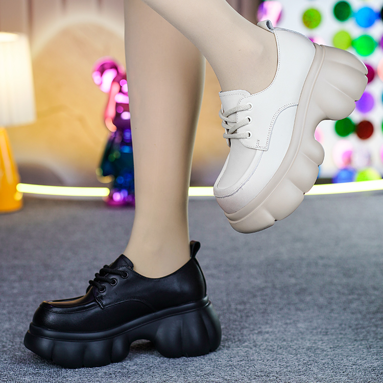 真皮乐福鞋女头层牛皮秋季新款系带粗跟厚底防水台百搭深口单鞋