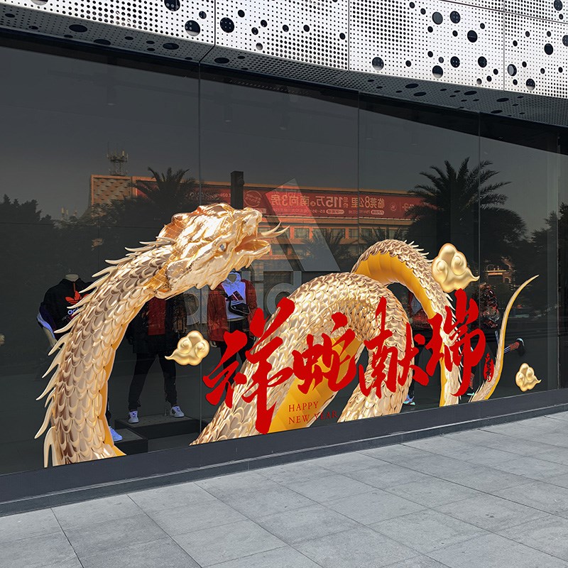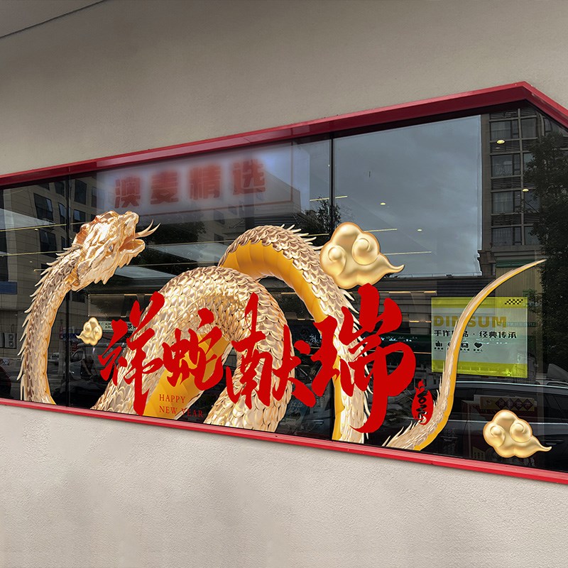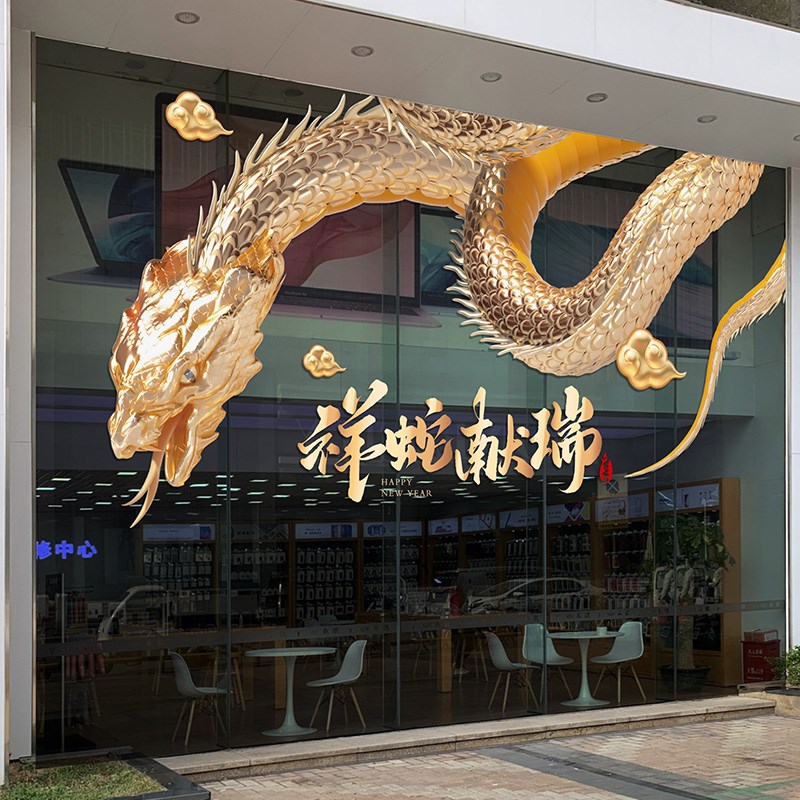 2025蛇年大型玻璃橱窗新年金蛇装饰静电贴纸蛇年窗花新春节日布置