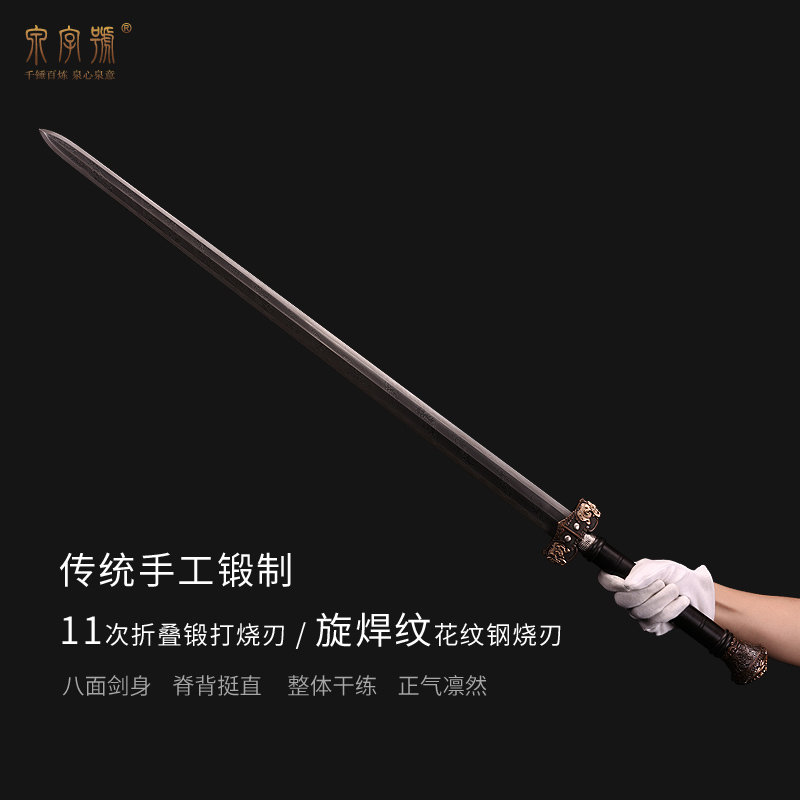龙泉市泉字号宝剑流光汉剑八面一体炫焊纹花纹钢鎏金银刀剑未开刃