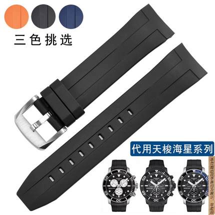 原厂代用YOPO硅胶表带天梭1853海星潜水T120407A/T120417A同款弧