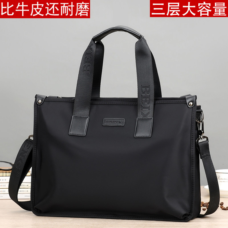 新款男士手提包横款男包单肩包斜挎包大容量帆布牛津布公文包男潮
