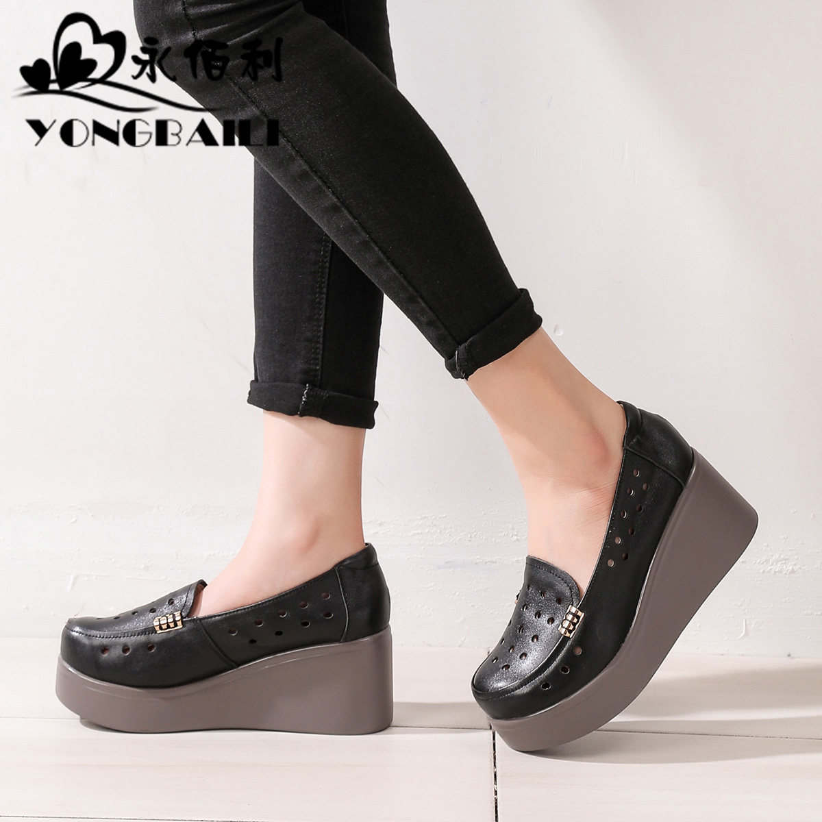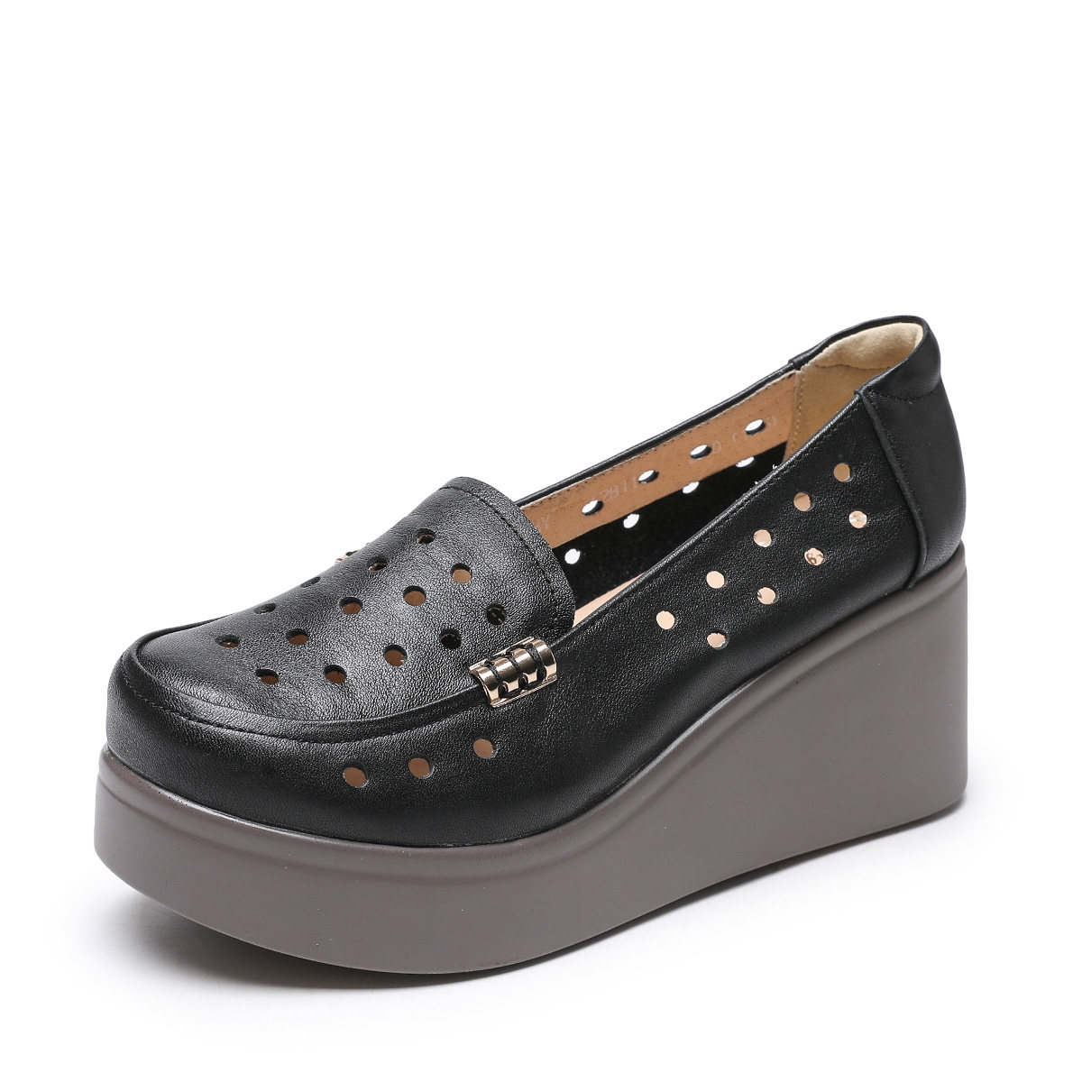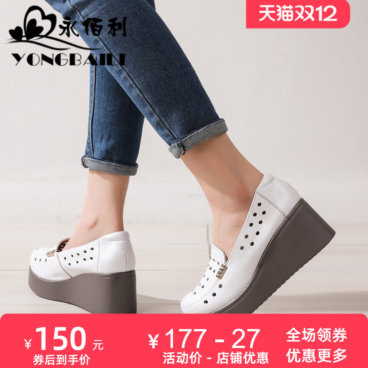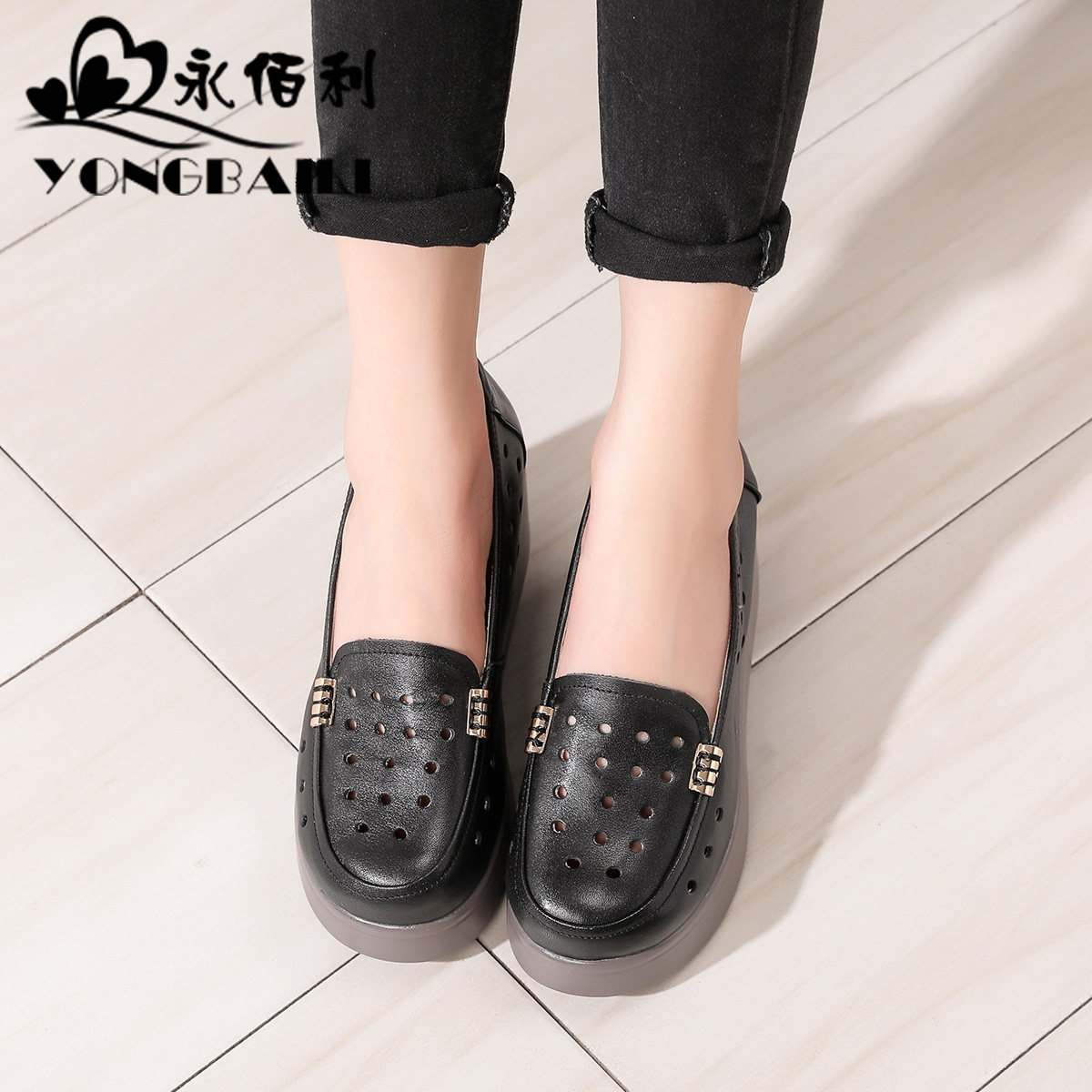 真皮厚底松糕鞋女春夏新款镂空洞洞鞋防滑妈妈鞋女鞋凉鞋软底单鞋