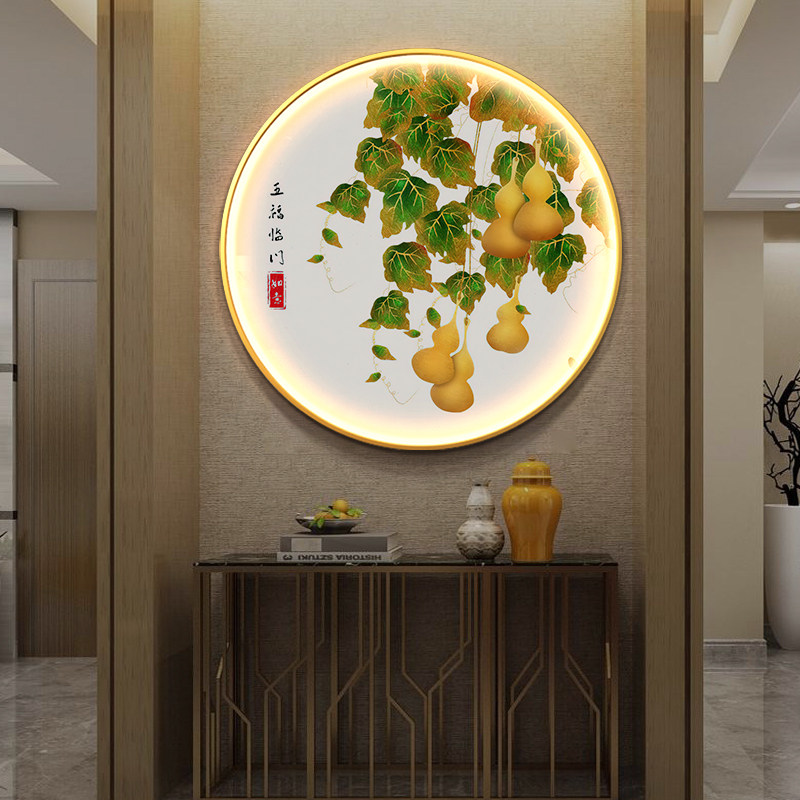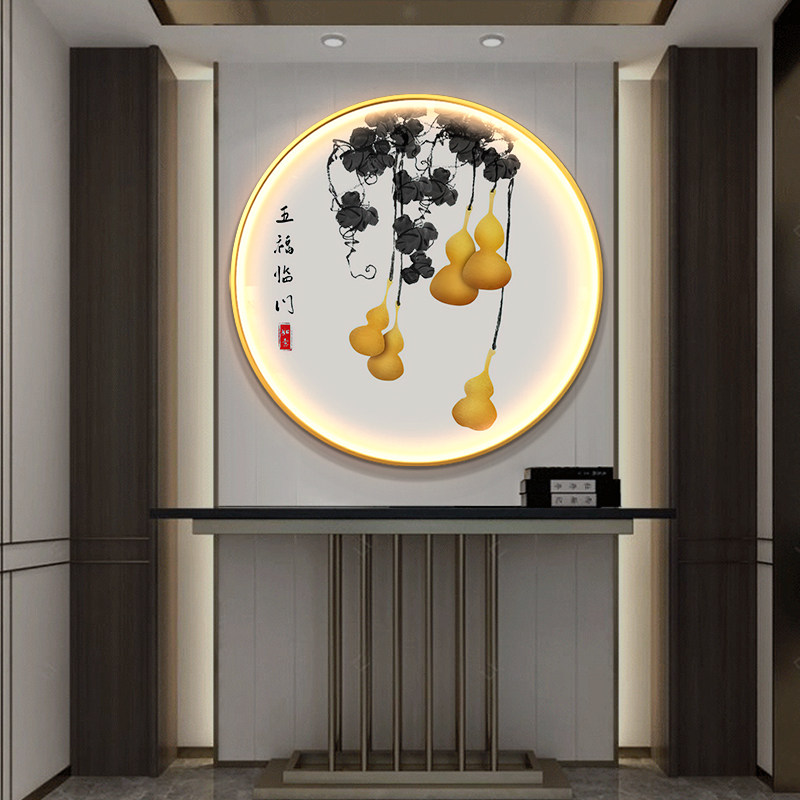 入正对门LED灯玄关装饰画过道走廊壁画五福临门葫芦发光圆形挂画