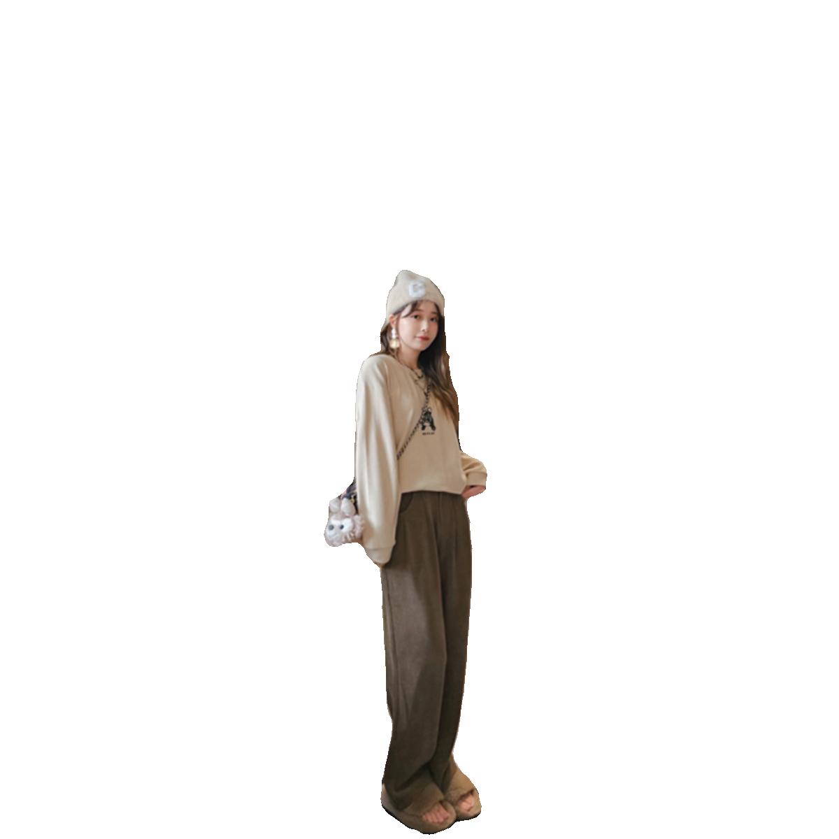 小个子拖地裤2025棕色秋冬加绒欧棉绒阔腿休闲宽松垂感直筒显瘦
