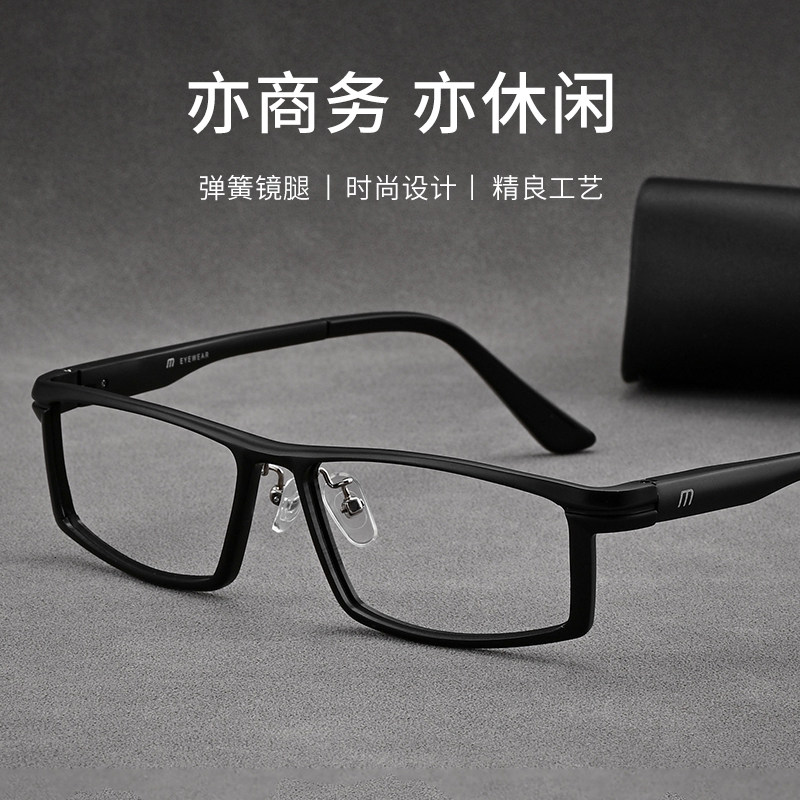 复古商务方框黑色眼镜框可配近视度数镜片男士大脸铝镁合金眼镜架