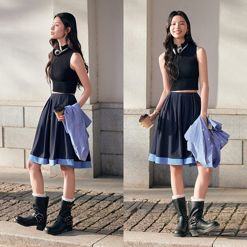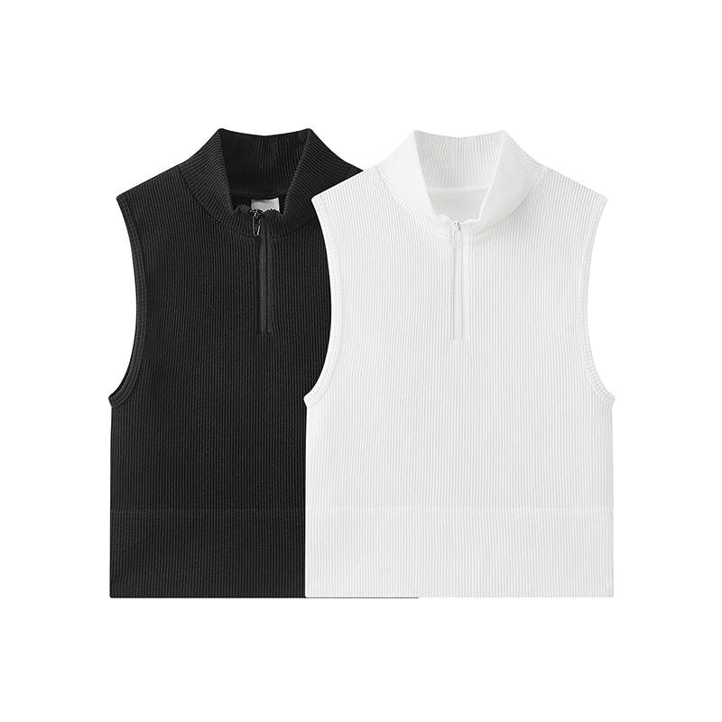 森马背心女高腰修身内搭纯色半开襟高领无袖上衣春季打底衫中长款
