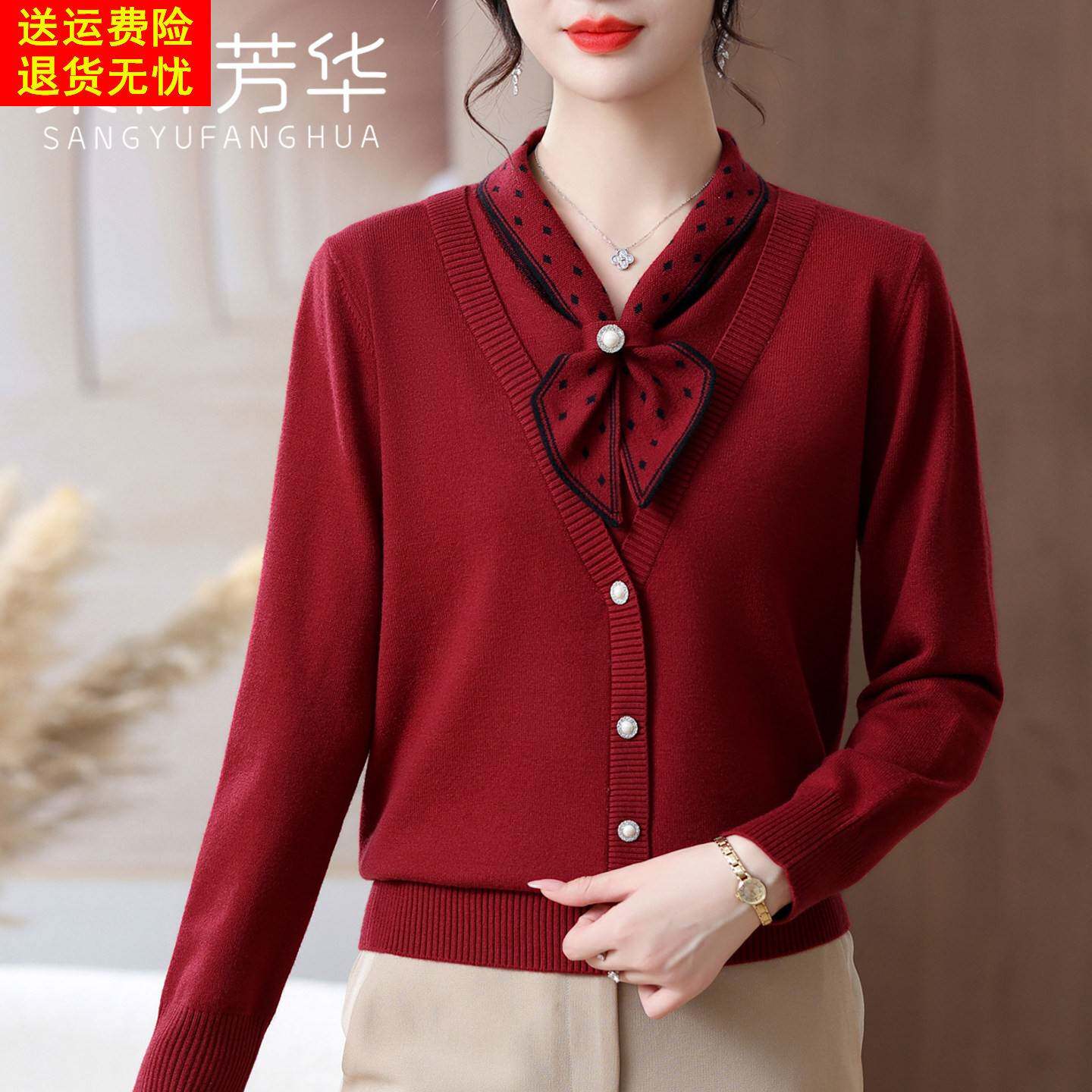 洋气妈妈秋装针织小衫中老年女装打底衫毛衣2025秋装时尚减龄上衣