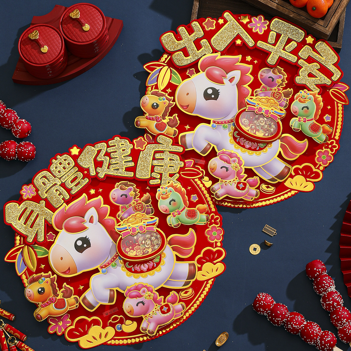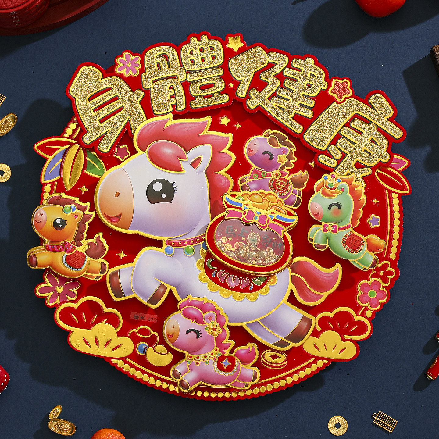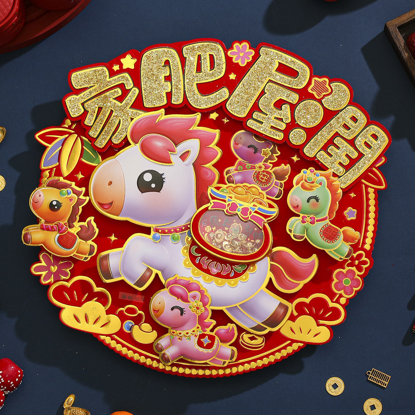 2026马年圆形立体植绒福字斗方