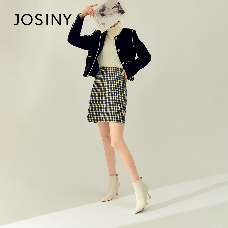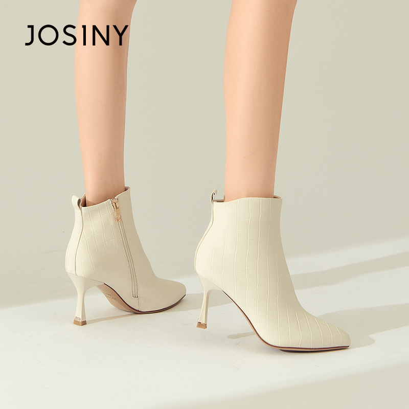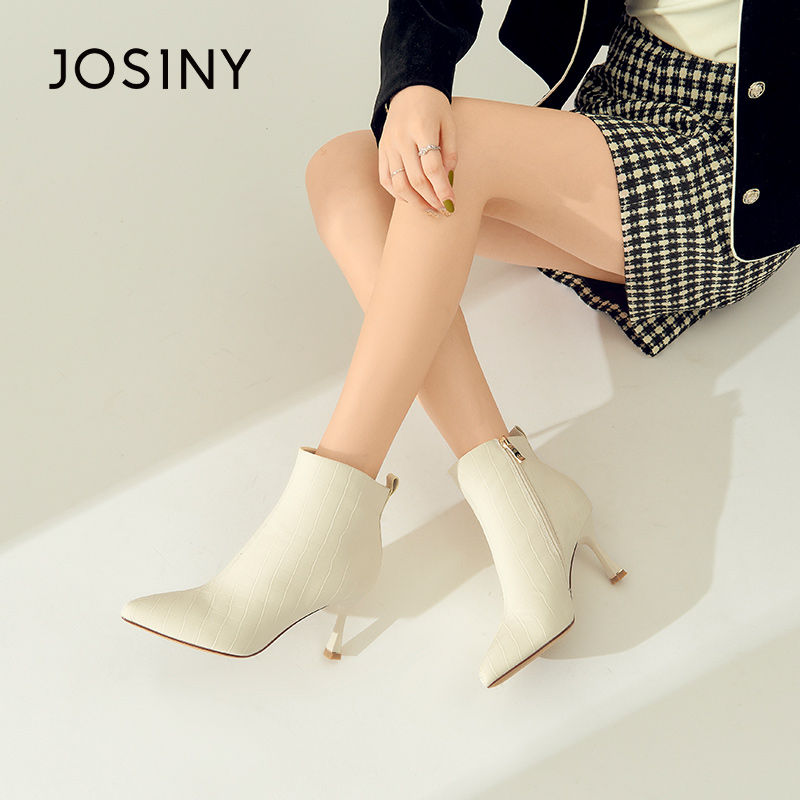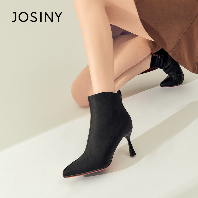 卓诗尼高跟时装靴女秋冬季加绒保暖气质尖头细跟小香风百搭短靴子