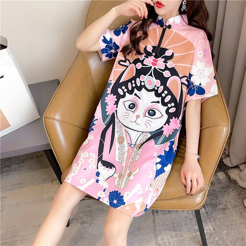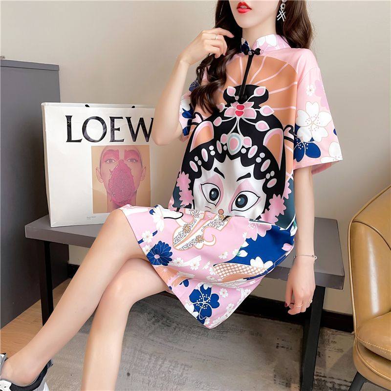 中国风短袖t恤女大码女装宽松韩版2026新款改良旗袍连衣裙夏装潮