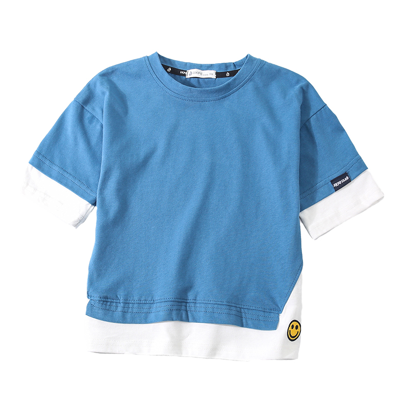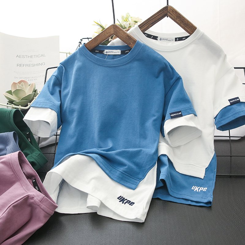 速发2021男童夏装T恤儿童半袖打底衫洋气中大童假两件上衣潮