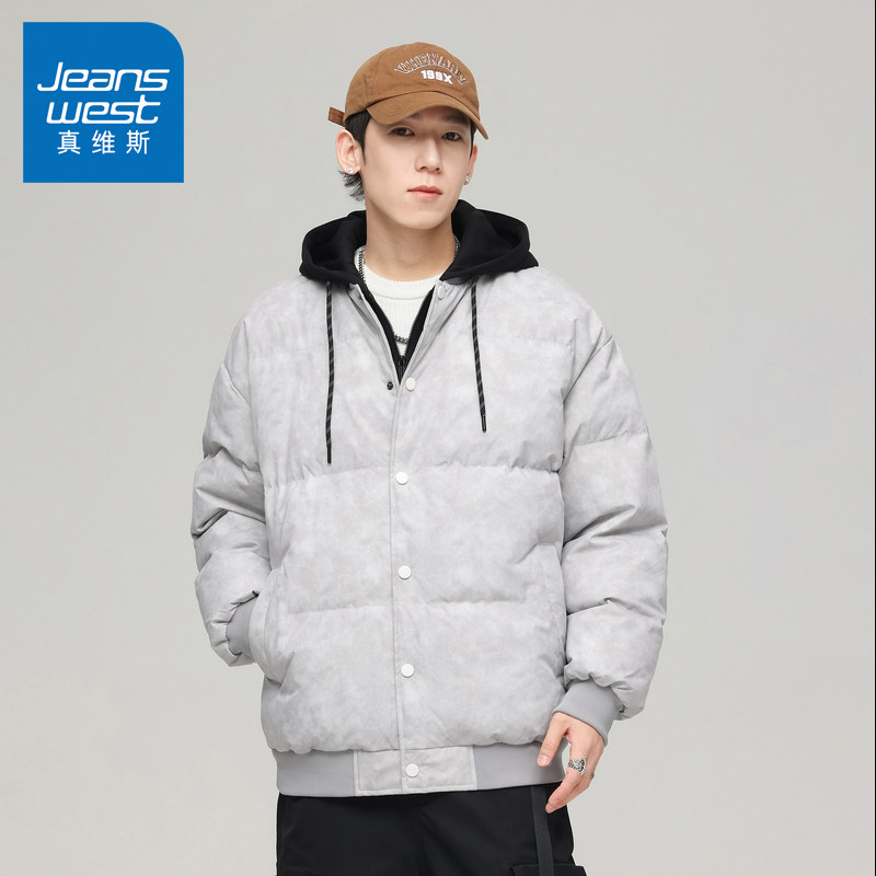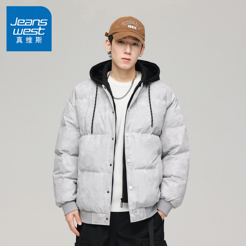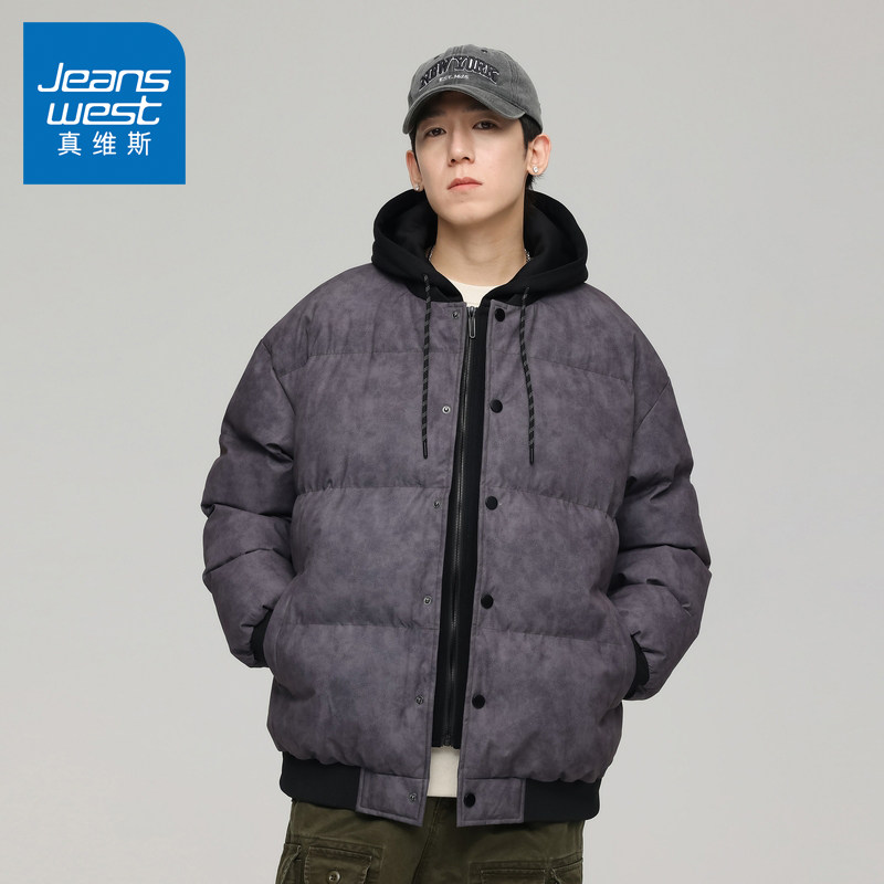 N5真维斯棉服男款2025新款冬季加厚保暖情侣装假两件棉衣冬装外套