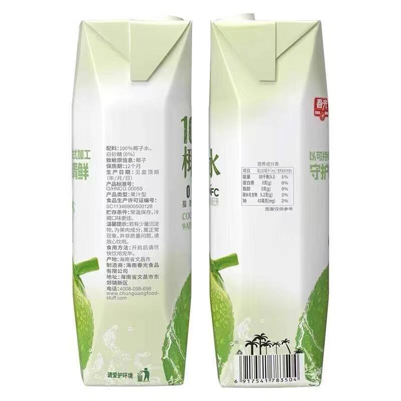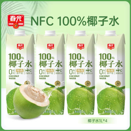 春光椰子水1L大瓶装100%纯椰子水NFC椰青运动电解质0脂肪健身饮料