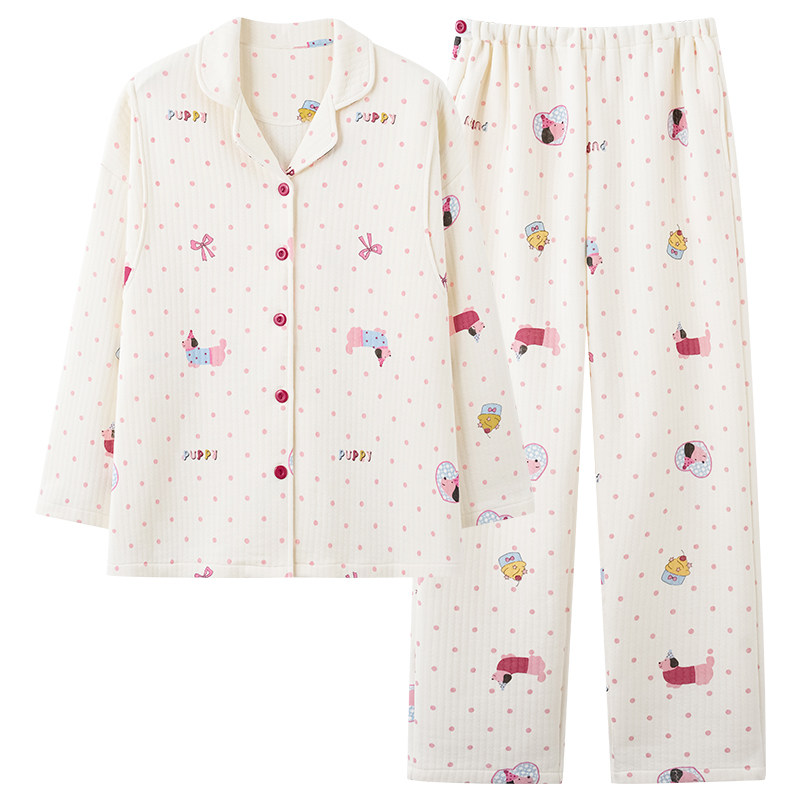 都市丽人夹层纯棉月子服秋冬加厚空气棉睡衣女产后哺乳孕妇家居服