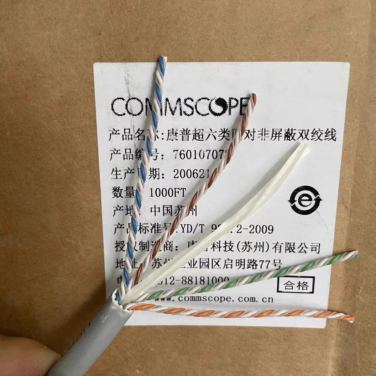 正品康普AMP超六类非屏蔽低烟无卤网线3091B万兆CAT6A双绞线1091B