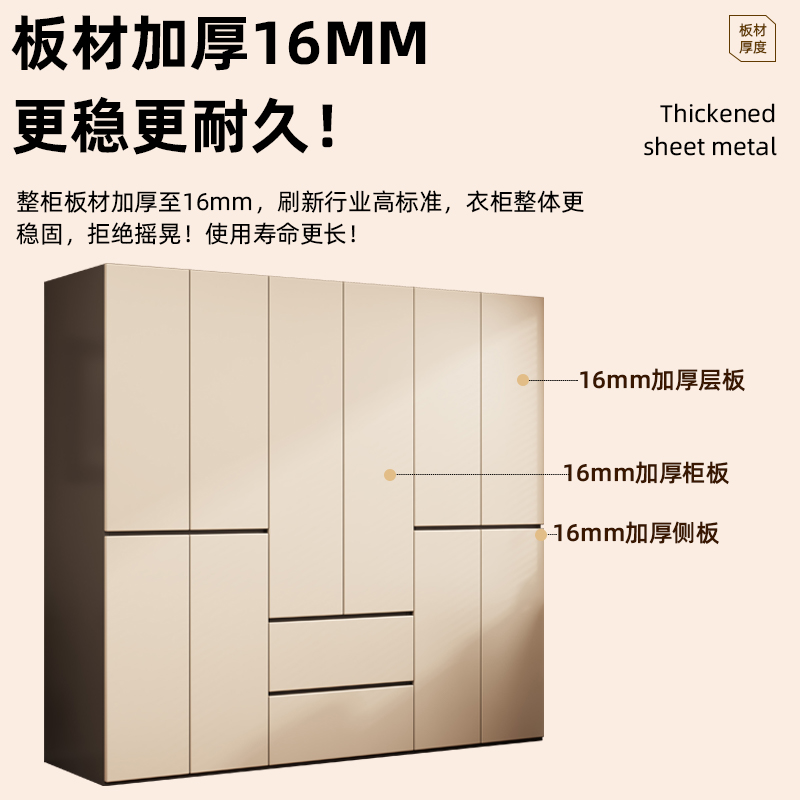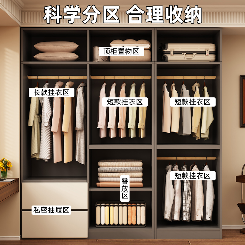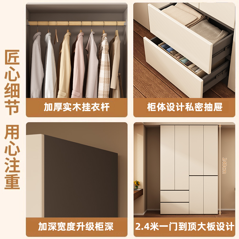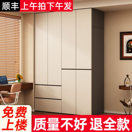 衣柜家用平开门成人简约现代组合经济型上下抽屉柜实木储物大衣橱