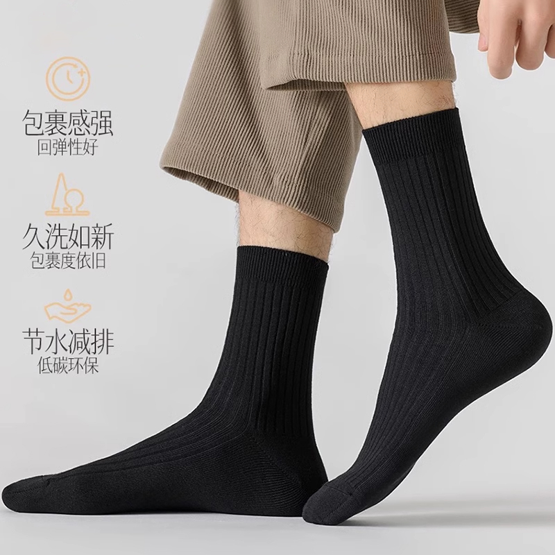 秋冬季男款纯棉防臭黑色中筒袜
