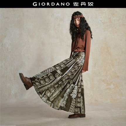 Giordano长裙蕾丝印花半身裙