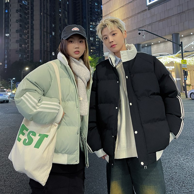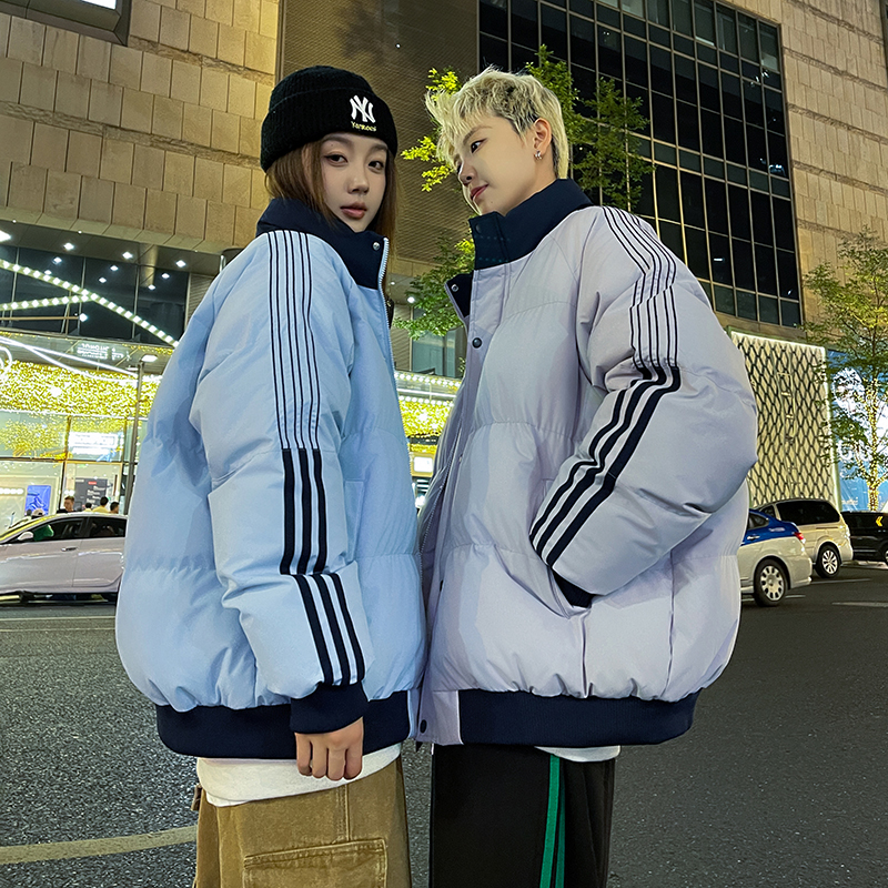 情侣立领羽绒棉服男女冬季oversize三条杠保暖外套宽松加厚面包服