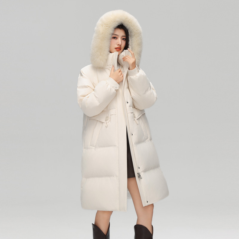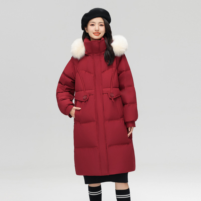 雪中飞2025春女士中长款羽绒服可脱卸帽狐狸毛领保暖甜美青春