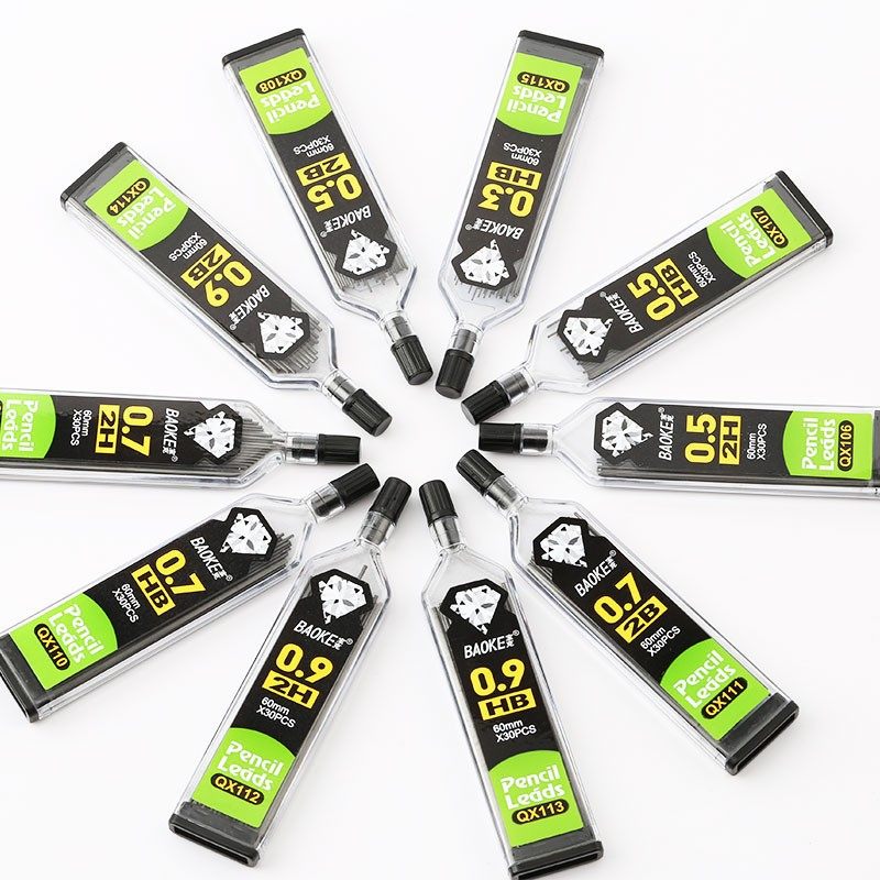 宝克自动铅笔替芯0.3/0.5/0.7/0.9 不易断办公美术绘图免削HB笔芯