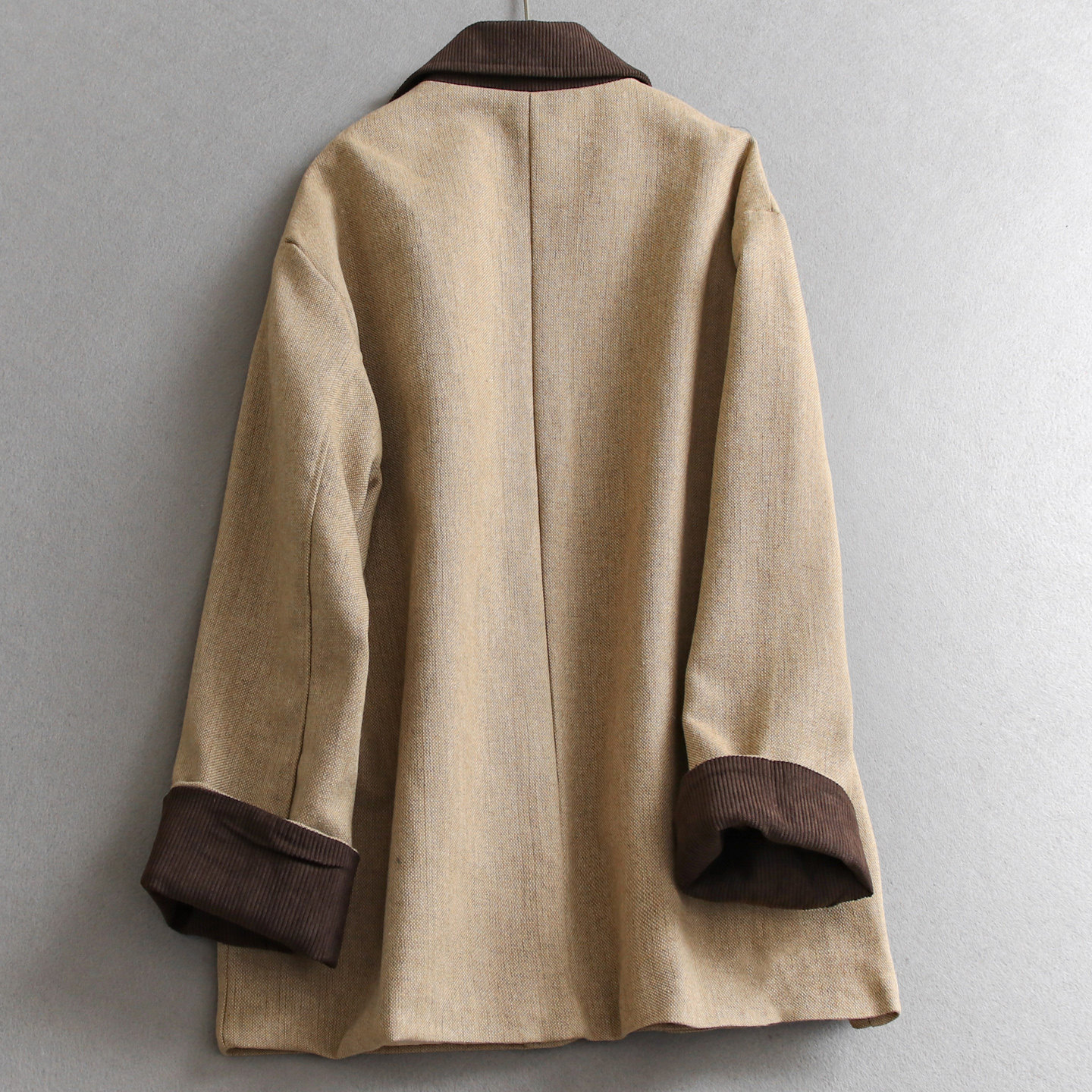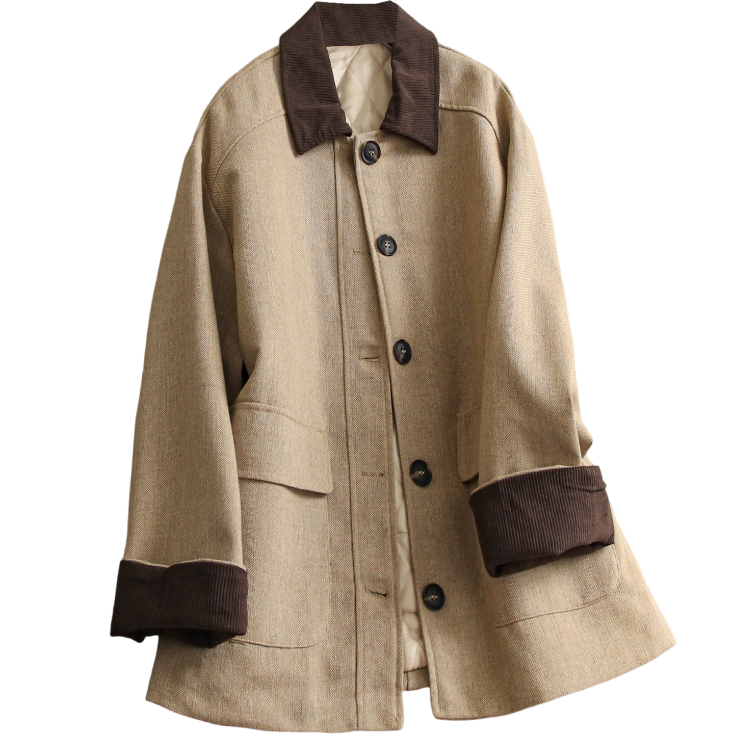 撞色翻领夹棉加厚中长款立裁H廓形包容藏肉长袖风衣女装外套Q172