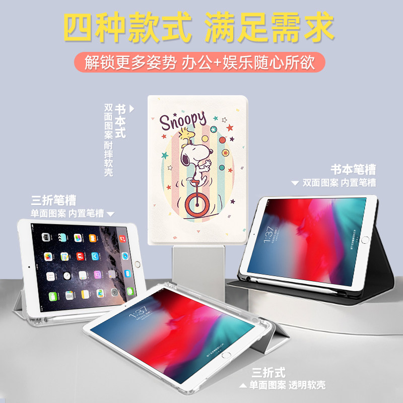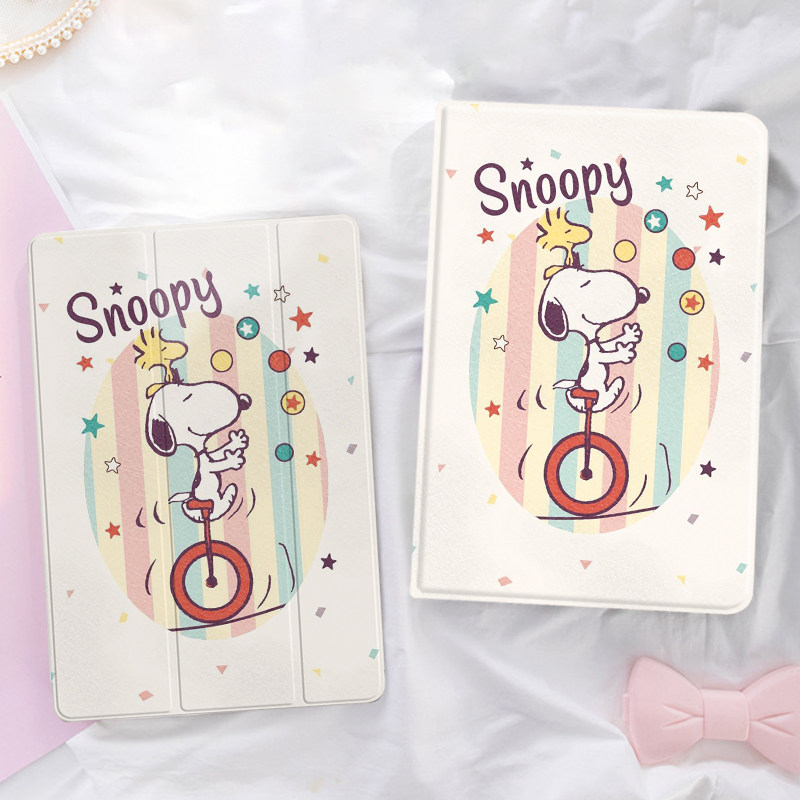 适用ipad保护壳pro2024平板套air6苹果2021第9代11寸史努比骑单轮车2卡通3迷你mini5硅胶2018三折2020带笔槽
