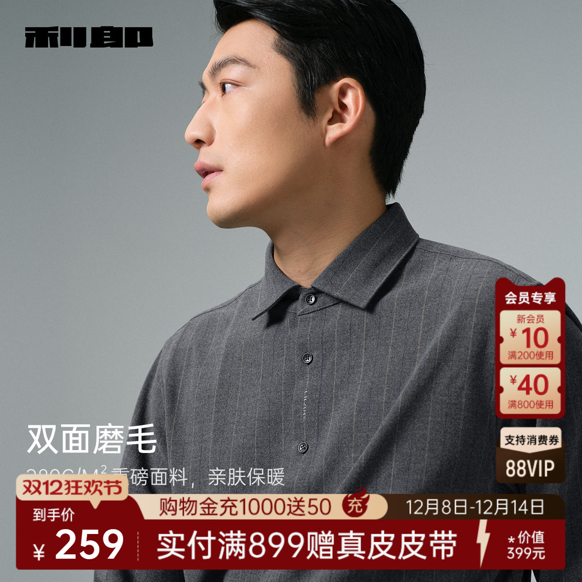【磨毛】利郎官方 长袖衬衫男士商务休闲条纹2025冬季新款衬衣男