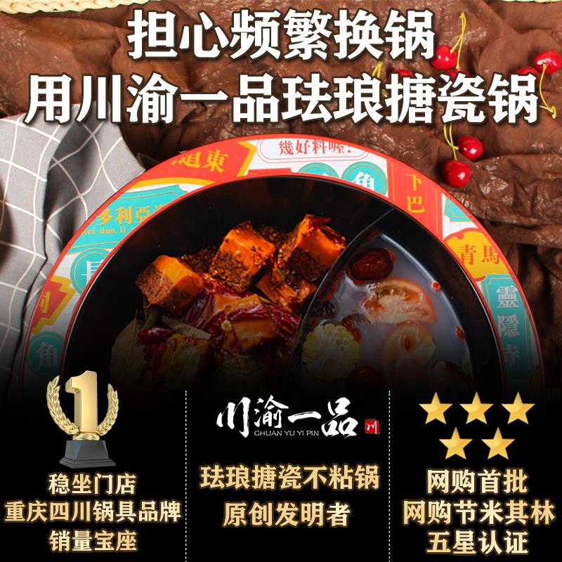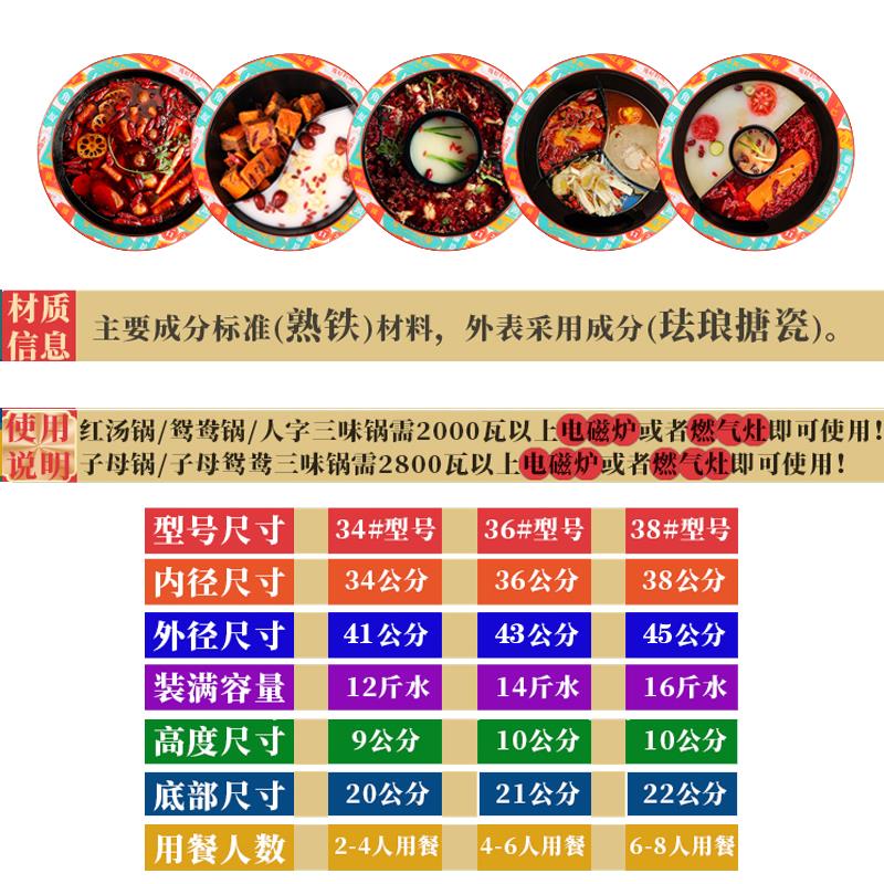 火锅锅商用国潮火锅店电磁炉专用搪瓷铁锅具加厚串串香鸳鸯火锅盆