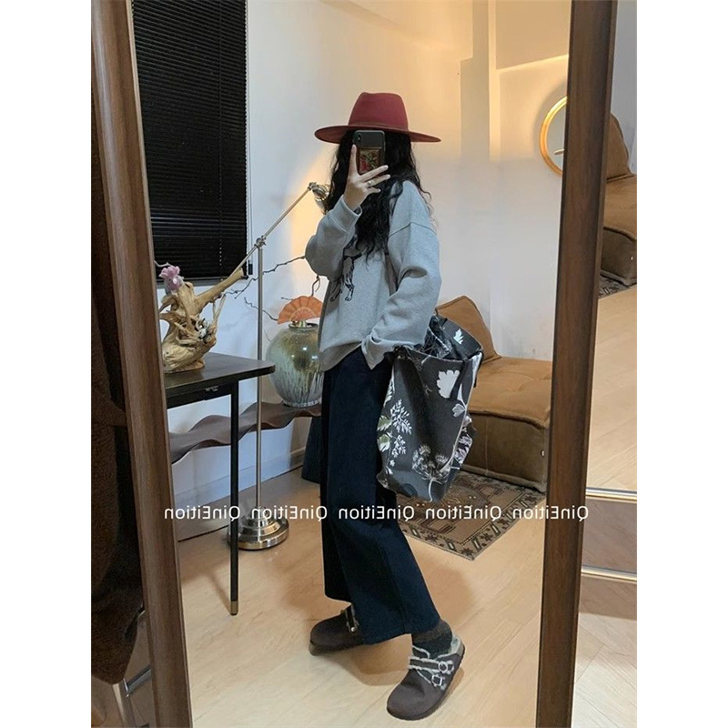设计感短款圆领卫衣女2025新款秋冬宽松加绒简约韩版春秋薄款上衣