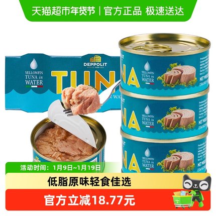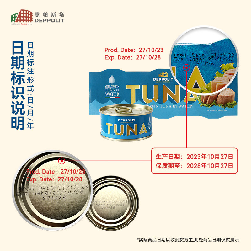 意帕斯塔水浸黄鳍金枪鱼罐头80g*3罐意大利下饭即食吞拿鱼罐头