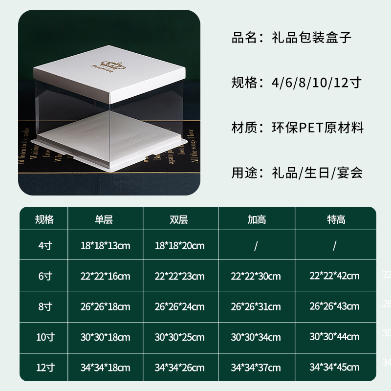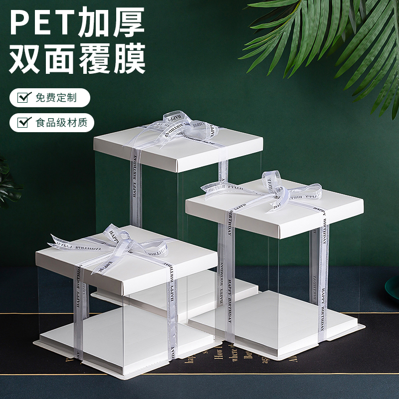 50套 透明生日蛋糕盒子4四6六8八10十12寸双层加高包装盒厂家直销