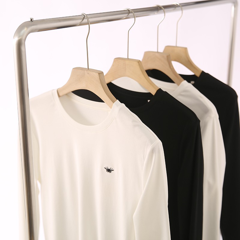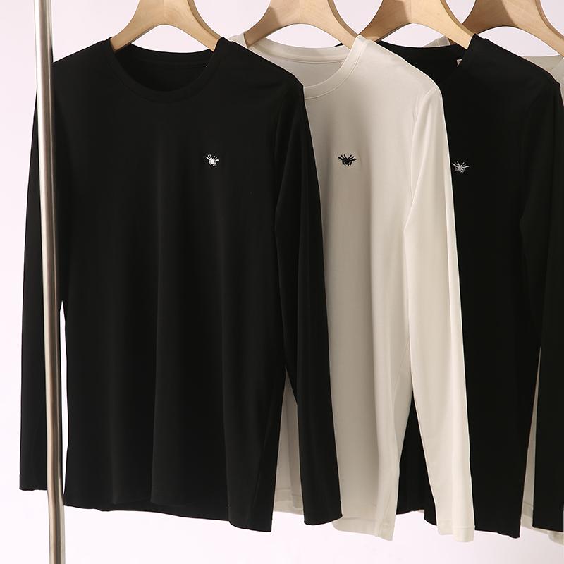 轻奢小蜜蜂!男士春夏新款轻奢风液态水柔棉长袖T恤衫圆领打底衫